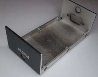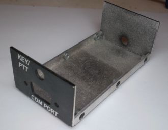 I also uncovered some of the original serial Winkeyer enclosure bottoms. These have holes cut for the serial D connector and also holes for key/ptt output and paddle input connectors. There is enough room to place a small speed pot if desired. Shown is the current Winkeyer2 serial board in this enclosure.