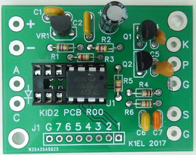 It is implemented in a 12F629 flash based PIC which supports ultra low power operation. We offer a PC board and parts kit that will help you get a beacon going with minimal effort. Note the PC board is designed to support both the 8 pin KID2 and also the 14 pin KID3 which will be available December 2017.